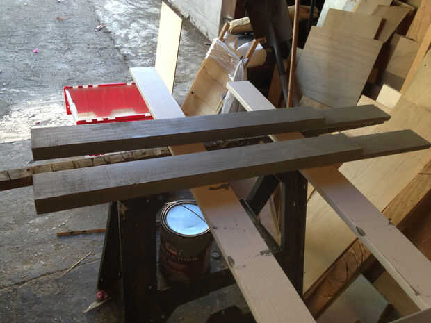 Los trinquetes se necesitan registrar sus respuestas a la báscula que se conectarán a los titulares de trinquete en las mortajas que se puede ver en las fotos 1-3. La base tendrá todos estos componentes y las heces. El color gris es igualar los taburetes industriales. Los triángulos de 2 x 4 son para reforzar la conexión de la base de los montantes.
