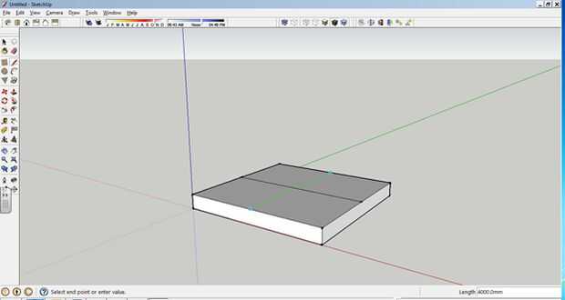 Primero es la capacidad de sketchup para ajustar a puntos medios. Puedo tomar la herramienta lápiz y dibujar líneas en mi cubo para encontrar el centro. Una cosa que quiero ser cuidado es que la línea que estoy dibujando cambia de color. Si es paralelo al eje rojo, será roja. Si es paralelo al eje verde, va a ser verde. Si la línea es de color negra, significa que probablemente va en alguna dirección loco, pero no puedes decir porque estamos buscando en un espacio 3D en una superficie 2D y a veces se producen ilusiones ópticas.