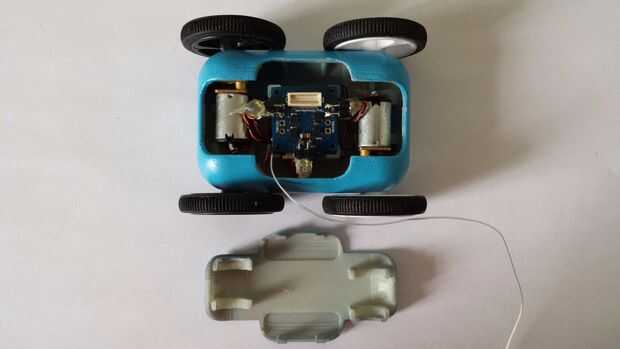 Monte la pila, conectar la potencia del procesador en la placa motor y enchufe los dos motores en los puntos 2 y 4 motor. Puede soldar los cables directamente en los motores y el procesador a la tarjeta de motor, headers para hacer las cosas un poco más conveniente si uno de los motores de la rotura o queríamos añadir una batería extra. Tomar la placa USB y enchufe en la parte superior de la pila para cargar la batería. Utilice el código siguiente para programar el receptor.