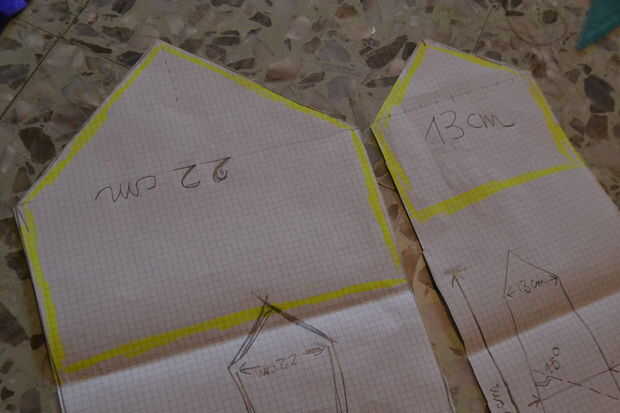 Con las dos puntas de los patrones anteriores que hiciste como una plantilla, dibujar y cortar las dos puntas de la tela de algodón.