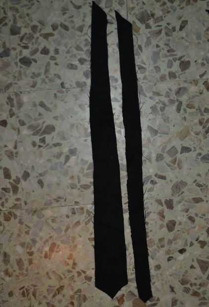 Si el tejido es largo bastante usted puede cortar en un pedazo entero, si es corto en dos pedazos (divid con un ángulo de 45 º).