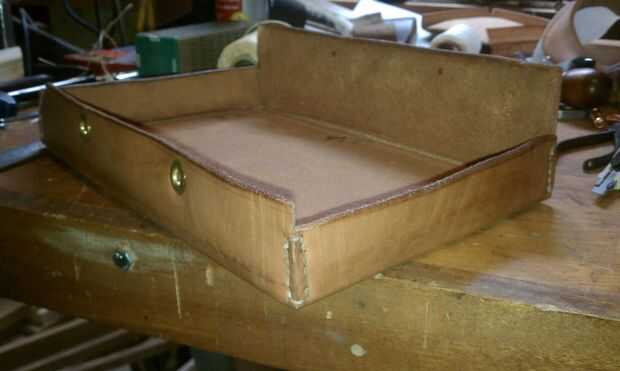- Con la lezna y manteniendo la parte posterior del cuero perforar un agujero en un lado en la otra sosteniendo el punzón plano por lo que el agujero está en ángulo. Quite el punzón.