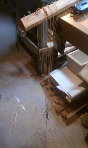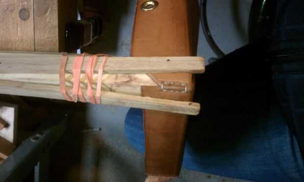 - Coloque la tapa en la abrazadera aparejada de un trozo de madera y dos palos de pintura.