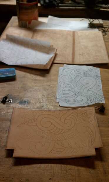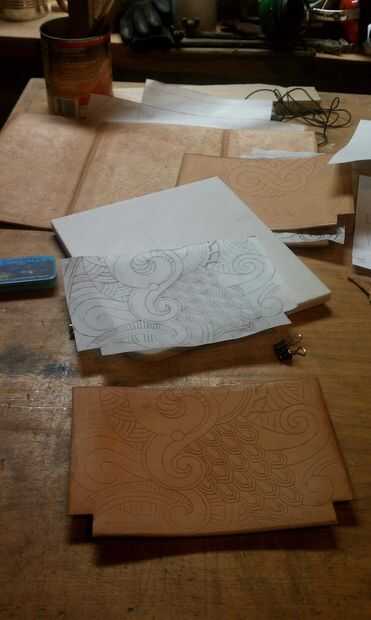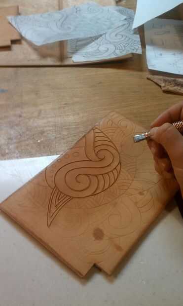 - Humedezca el cuero en la sección que desea iniciar en. Tallado al igual que trazó el diseño, a partir del interior trabajando.