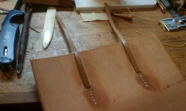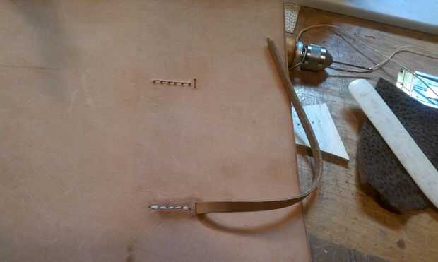 • Marque y perfore agujeros costuras a través de dos piezas de cuero con la lezna.