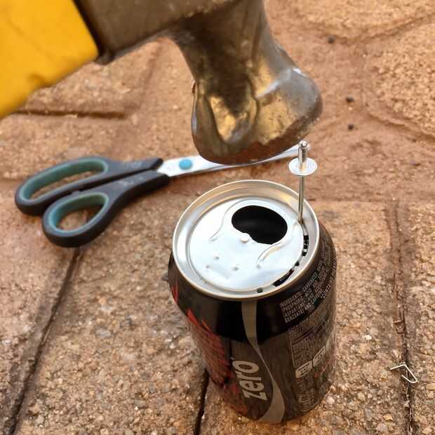 Haga agujeros en la parte superior de la lata para que usted pueda tomar fácilmente. Si no desea hacerlo por la vía difícil, puede utilizar un abrelatas. Pero si no, se trata de otra manera.