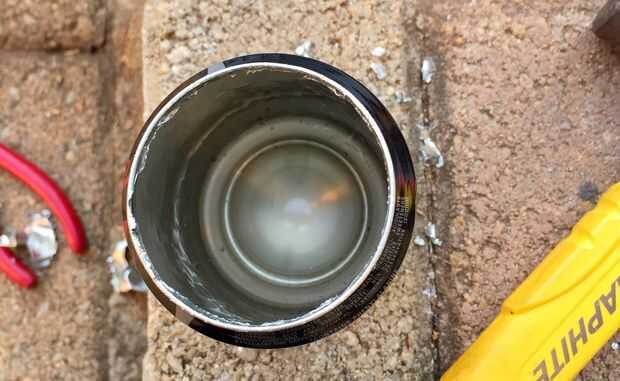 Presione hacia abajo el resto del metal en la lata para que no se corte. Cinta adhesiva sobre él para mayor protección.