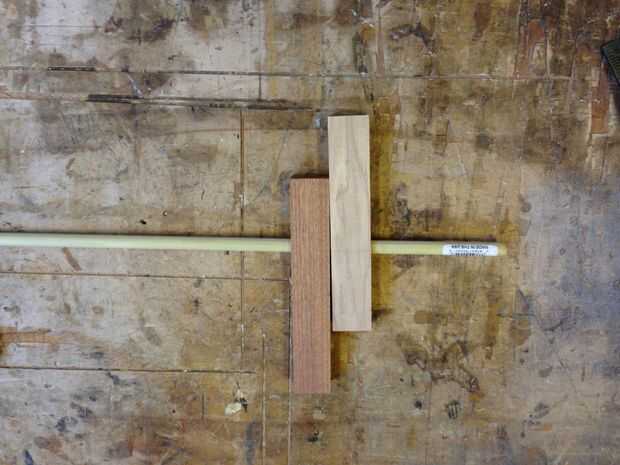 Aplique pegamento en el lado de cada pieza y dentro de los agujeros perforados y cada pieza en el orden deseado en la espiga del hilo de rosca.  Una vez en todas las piezas, girar las piezas marcadas peg en el dowl para que apunte hacia el exterior.  Esta será la posición que se solidificó en hacer ropa.