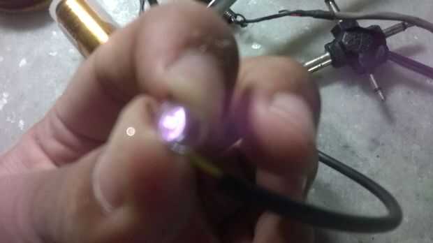 Revisa los terminales positivo y negativo antes de hacer conexiones permanentes. El LED remoto del TV cuando se conecta a la batería emite luz invisible para el ojo humano. Pero se puede ver la luz con su cámara. He utilizado este fenómeno para mi grabación de la visión de la noche.
