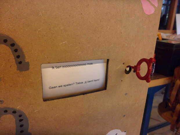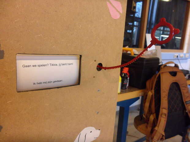 Tira el palo rojo, el cilindro comenzará a girar y se detendrá en una frase al azar.