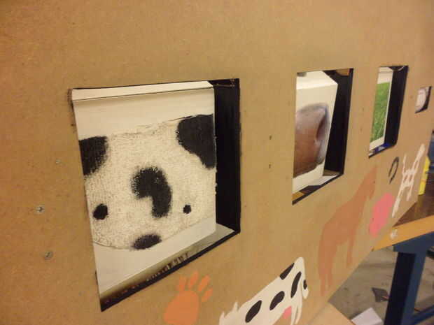El espacio vacío detrás de las imágenes de los animales están pintados de blanco.