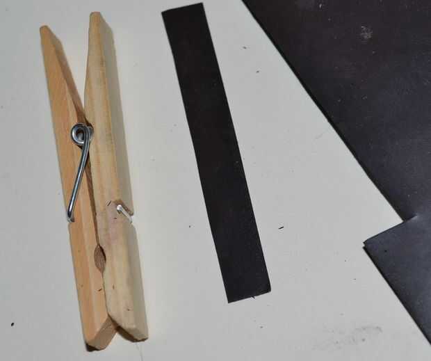 Corte un pedazo del imán plano, tan grande como el lado de las pinzas y pegamento a algunos de ellos.
