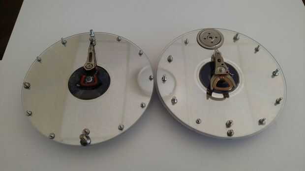 Examinar los brazos extraídos de ambos discos duros. Algunos tienen un orificio en el extremo que puede o no puede caber sobre el eje del reloj.