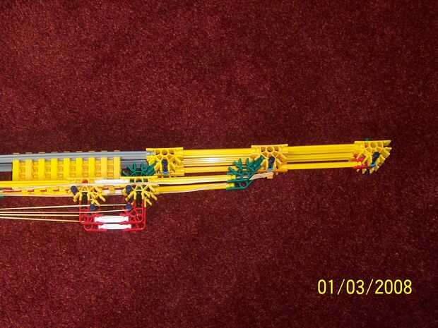 K'nex de una banda de caucho pistola con revista cargar sistema.  Revistas pueden ser de muchas longitudes diferentes para propósitos diferentes.  Aunque sean como barriles intercambiables, pedirá los compartimientos.Pros:-Semi-automatica-Compartimie