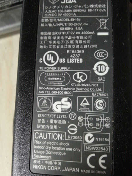 Primero probé la batería Nikon para ver qué tensión puso hacia fuera. La batería dice que es de 7,4 voltios. Probado en 7,61 voltios desde el terminal positivo al terminal negativo. También revisé la tensión entre el terminal positivo y el terminal "S". Aquí era a 7,54 voltios. En el adaptador de CA para esta cámara en el adaptador de batería, el voltaje fue 9,38 voltios entre positivo y negativo y 9,29 voltios entre positivo y "S." Me mostró que la cámara acepta entre 7.4-9,29 voltios. En cuanto a cuanta corriente se necesita adiviné unos 3 amperios máximo para esta cámara. Esto se basa en algunas pruebas que he visto publicado en Internet. El real es probablemente la mitad eso, pero para ser segura utiliza una fuente de alimentación de 3 amp.