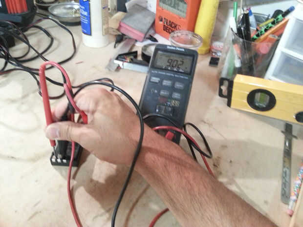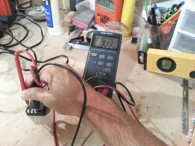 Tuve positivo 9,11 voltios a través de terminales positivos y negativos y positivos 9,02 voltios a través de lo positivo y "S" terminal. Asegúrese de que la polaridad es correcta. Prueba contra su regular funcionamiento normal para verificar que los resultados son similares.