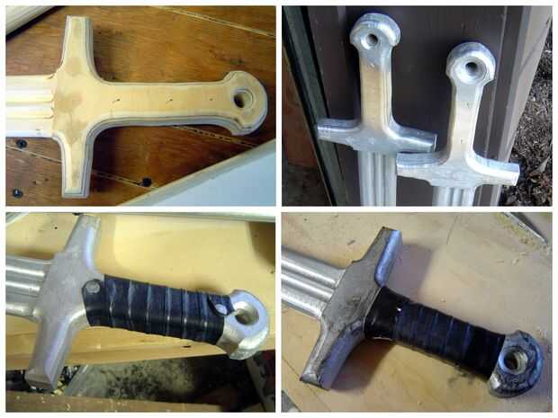 Rociaron las espadas con una pintura gris metalizada. La empuñadura tiene aproximadamente drybrushed con pintura negra a lo de la edad y para distinguirla de la hoja y para hacerlo mejor se funden el agarre. Las manijas tienen envuelto con tiras de tubo interior bicicleta agarre y alguna cinta gorila en cada extremo para detener rasgado.