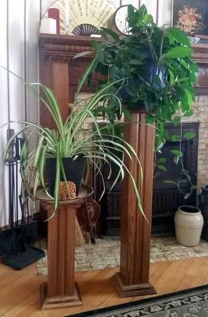 Las rejillas ahora sentaban en mi tienda de sótano, creciendo más polvo. Pero se veían tan agradables y realmente pensé que debe haber algo que podía hacer con ellos. Ahora, mientras mi lema ha sido que uno nunca puede tener demasiados amigos, linternas o abrazaderas, mi esposa está de acuerdo con la parte de amigos, pero insiste en que los otros dos elementos deben ser zapatos y soportes de la planta (en realidad, es bastante un poco más largo que su lista). Y un día, mientras que examinar mi escondite de estantes del himnario, me di cuenta que dos de ellos se unieron haría una columna madera aspecto agradable, que haría una buena planta - esperar - soporte! ¿No sólo encontré un uso para todos los estantes, pero sería un uso que haría mi esposa feliz... y es que cualquier logro mayor que poniendo sus habilidades más bien modestas para trabajar y - en tanto hacer - produciendo algo agrada a su cónyuge? No creo que así sea. Al taller.