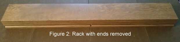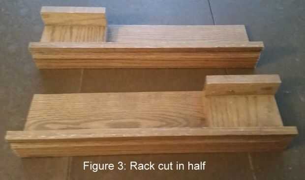 La primera jardinera que hice era alto - tan alto como hacerlo sin una horizontal en algún lugar de la columna. Yo uso dos estantes del himnario para soporte de la planta. Para este Instructable, quería hacer una mitad de alto que el original, que sólo utilizarían una parrilla de himnario, corta por la mitad. Así que el primer paso fue cortar los extremos de un himnario rack, dejando tanto del estante como sea posible (Figura 2). Un par de golpes fuertes con la Sierra de mesa fue todo que lo tomó. Luego otro corte en el punto medio (Figura 3) y se completó el paso 1.