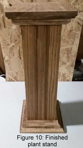 Usé un par de capas de 3 X acabado semi-gloss polycrylic en el cuarto lado y arriba y abajo, añadiendo una capa en los lados ya terminados para refrescar un poco el acabado, y el soporte de la planta fue completa (Figura 10).