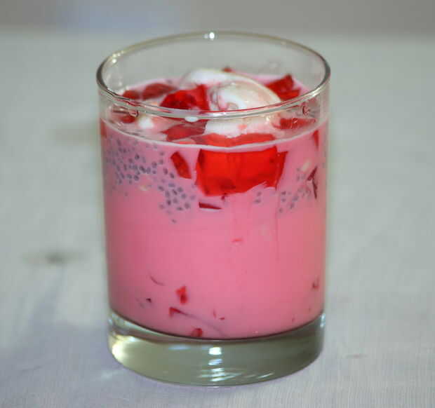 El verano es la vuelta de la esquina, y es el momento de stock bebidas frías nos relajarse este verano. Cuando trago frío y sed ha convertido casi en sinónimo de tienda comprada las bebidas carbonatadas, este verano vamos a saciar nuestra sed con Falooda casera saludable. Falooda, también llamado Paloodeh es una bebida postre de origen persa. Tradicionalmente, Falooda es leche con sabor a rosa con una combinación de la jalea, las semillas de albahaca y, un tipo especial de fideos de arrurruz. Prefiero Falooda sans fideos. Hay un montón de variedades y sabores en Falooda, pero voy a presentar mi versión favorita; es una bebida de solución rápida que necesita cocinar nada en absoluto, excepto alguna preparación por lo menos 2 horas de antelación.