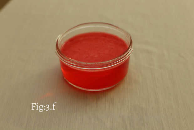 3. prepare la gelatina según las instrucciones del paquete. Pack sólo ½ es suficiente para 2 tazas de Falooda. El resto puede guardarse para uso posterior. Ver Fig:3.f