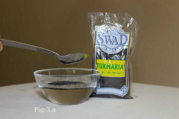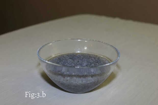 1. remojar 2 cucharaditas de semillas de Tumaria/albahaca en 1/2 taza de agua. Deje reposar 30 minutos. Ver Fig:3.a y Fig:3.b