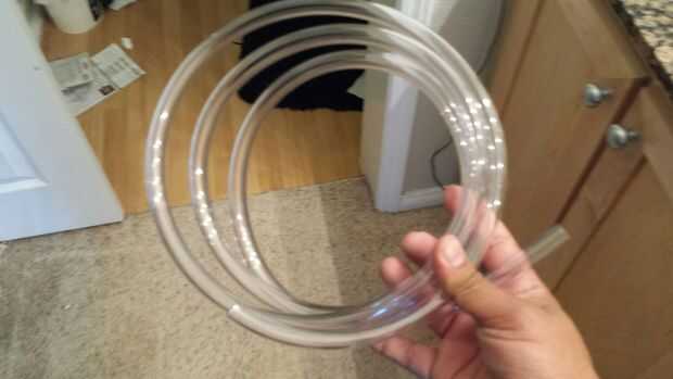 -trozos de manguera de drenaje ($14,00): el tamaño es cerca de 4 pulgadas para esto. Cabe completamente en donde el ventilador va y hace para la buena circulación de aire.