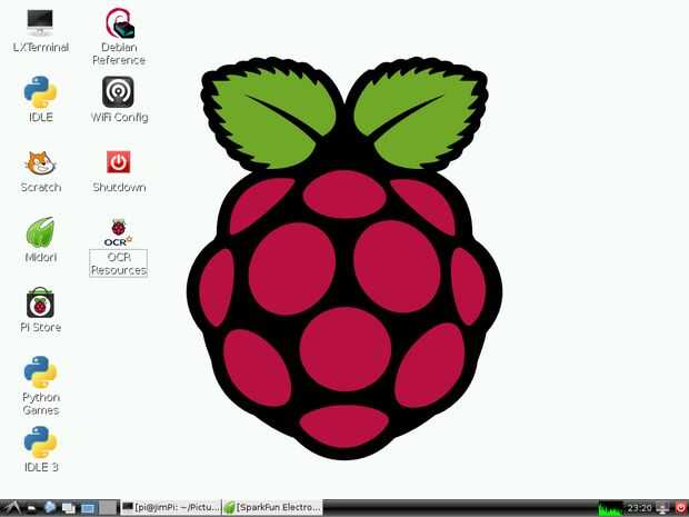 después de plug-in tarjeta SD a frambuesa pi, conectar accesorios y enchufe en el poder. directamente será arrancado a escritorio Raspbian. el Pi está listo ahora.