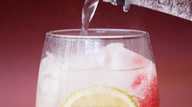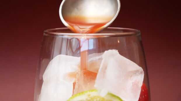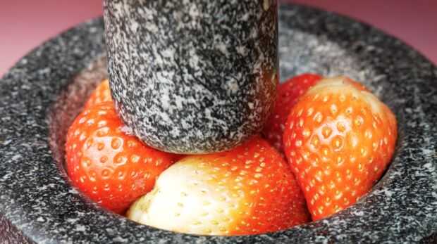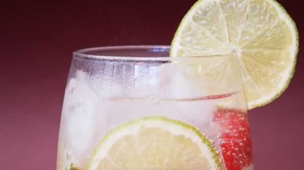 Cáscara y rallador el jengibre. Triturar las fresas para soltar todo el jugo. Picar y jugo de los limones. Añadir todos los ingredientes a una olla y hervir a fuego medio. Una vez que la mezcla comience a hervir, retirar del fuego y dejar empapar durante 1 hora. A continuación, tamizar la mezcla para retirar la pulpa. Añadir algo de hielo a un vaso y añadir 4-5 cucharadas del jarabe. Para terminar, cubrir con agua soda.