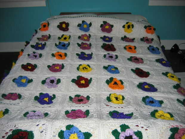 6:Pansy afgano: este patrón fue dado a mí, realizar en primer lugar, todos los pensamientos entonces hacer de bloque y atarlos juntos. Usé un gancho de F para los pensamientos y a J para el canteado.