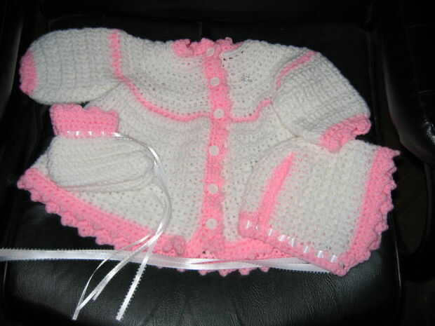2:Girl canastilla; Lo hice en hilo rojo corazón para rigidez adicional. Usé el mismo patrón que hice para el niño, traje de jogging.