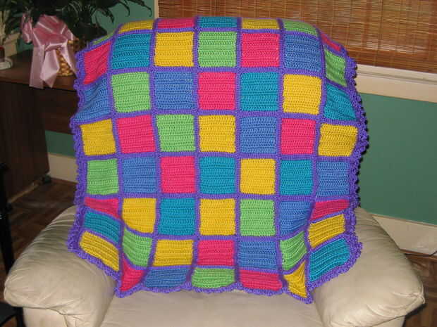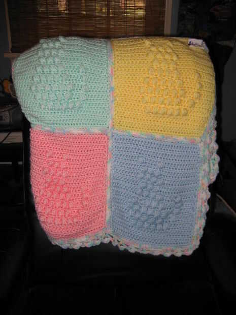 Manta de 7:Baby bloque; usé Caron simplemente suave y un gancho de H, y el patrón era libre en uno de la madeja.