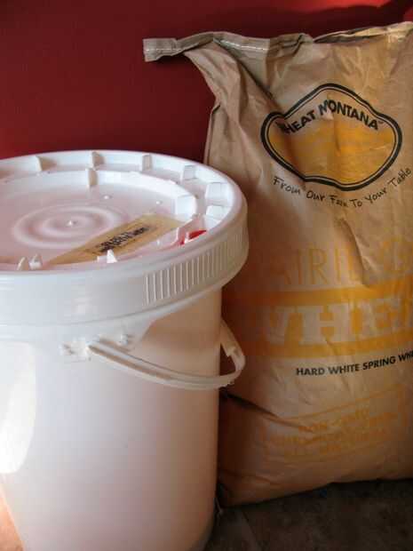 GRANO. En primer lugar primero tienes que investigar y encontrar una fuente de buen grano (trigo bayas). Llego a mi en 50 bolsas de libras a través de alimentos naturales país vida. http://www.clnf.org/ que puede elegir entre rojo duro, oro pradera, bayas de trigo blanco blando rojo o suave. Prefiero usar trigo de oro de la pradera ya que produce un pan más ligero en color y textura. Recomiendo a partir de este tipo porque es más cercano al pan blanco en sabor y textura. Guardar mi grano en grandes, cubos de 5 galones con gamma sellar las tapas, que también se pueden comprar a través de alimentos naturales país vida.
