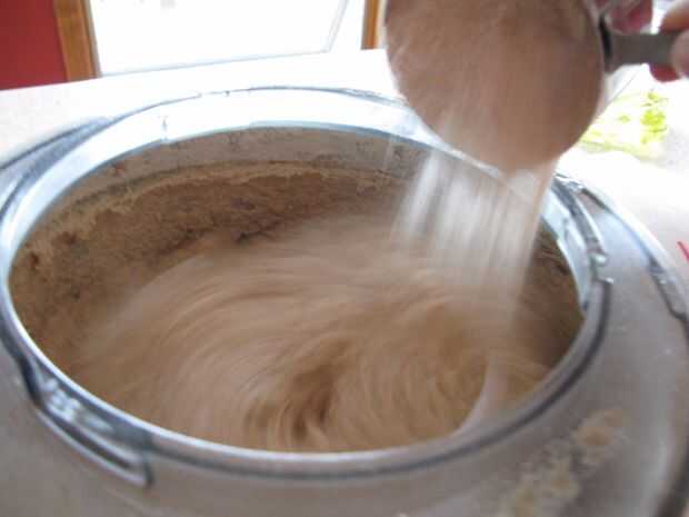 Moler: gire en su amoladora, llene la tolva con el grano y esperar a moler en la harina.