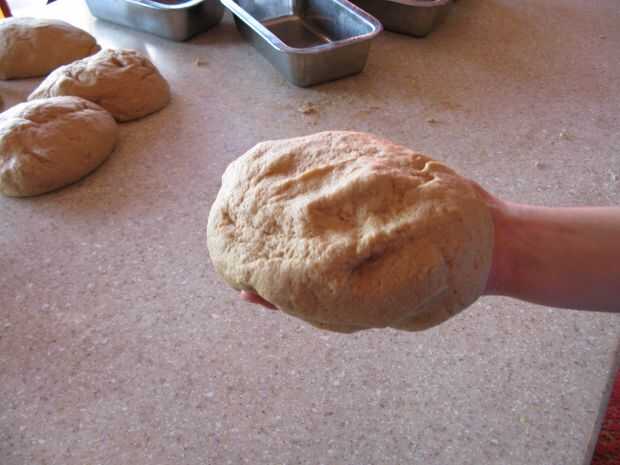 Formar la masa: este es el paso donde convergen ambos métodos. Tomar la masa y córtela en seis partes iguales. A veces uso una escala de precisión, pero puede globo ocular esta parte si lo desea. Para cada barra de pan, necesita a golpe en el mostrador por dos razones (1) permitir que salga cualquier burbuja de aire para evitar las bolsas de aire en el pan terminado y (2) para obtener un pan bien formado para poner en tus ollas. Tomar un trozo de masa en la mano derecha. Golpe lo hacia abajo en el contador para que tu mano es horizontal con los dedos apuntando hacia la izquierda. Con la mano izquierda, doblar la masa en la mano derecha. Slam es una el contador otra vez. Repita este movimiento 7 a 10 veces, hasta que las burbujas de aire desaparecen y tienes una bonita barra de pan. Observe en la imagen cómo se encuentra la parte inferior de la barra de pan. Coloca cada pan en un molde engrasado. (Saber esto suena confuso, pero por favor, consulte las fotos y, con práctica, te prometo que usted conseguirá la caída de la misma.)