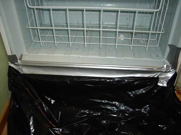 7. Asegúrese de que las cintas sellen la junta entre el congelador y la bolsa, así que fusión agua o hielo no derramar al piso seguro. No queremos, hacemos ahora??