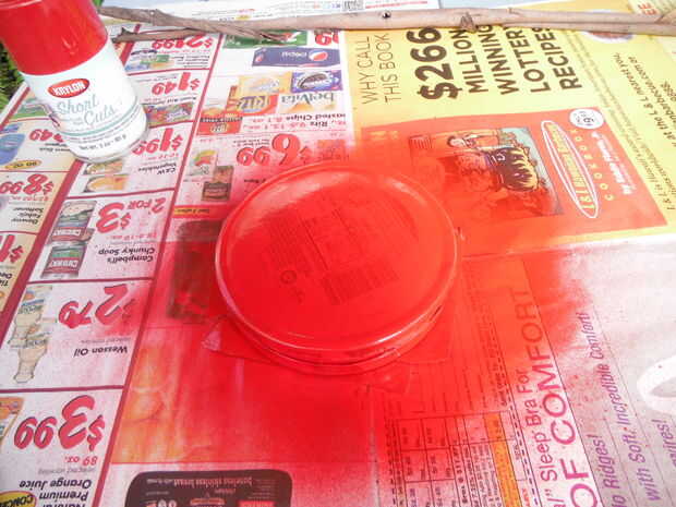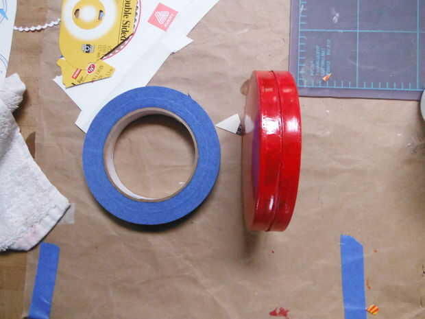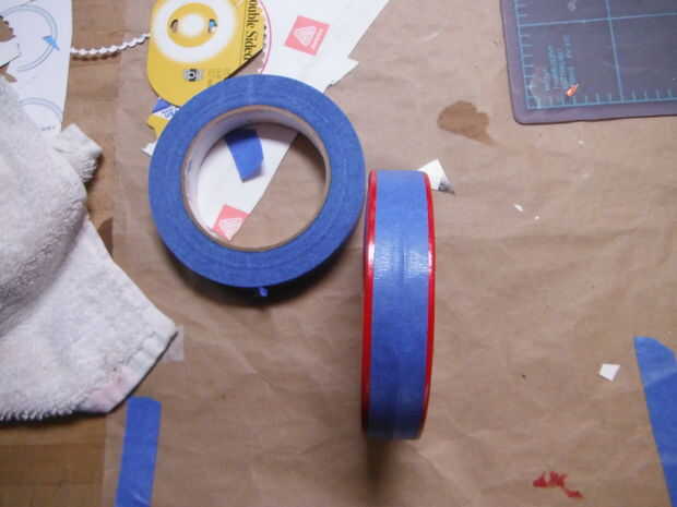 Máscara de la parte superior para que no reciba en la cubierta, luego pintar fondo y los lados. Después se seca, poner una tira de cinta (o lo que quiera) alrededor de los lados- Sólo usé cinta de pintor por el color. Todo hecho!