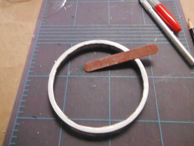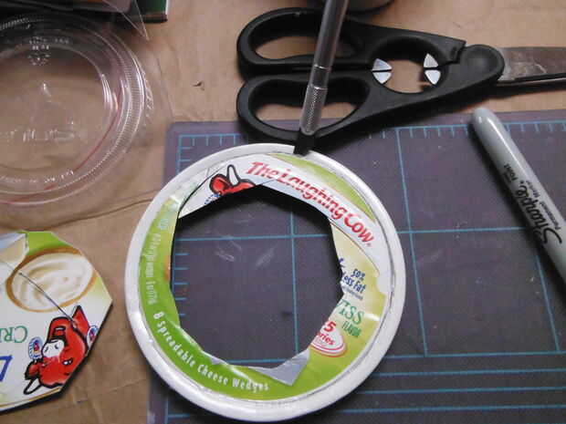 Originalmente, marcado el interior e iba con unas tijeras, pero entonces se dio cuenta debe ser marcado en el exterior y cortar con un exacto.