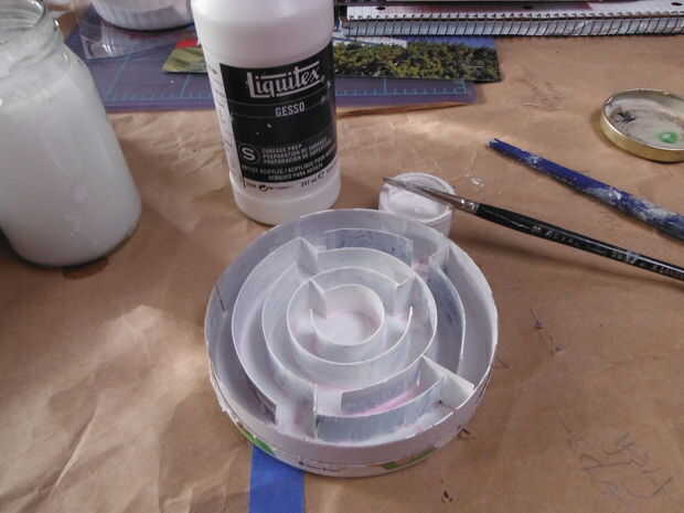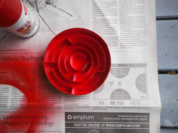 Antes de pintar la parte inferior, tiene una capa de gesso como la impresión en las tiras sería difícil de cubrir en caso contrario.  Ambas piezas consiguieron entonces una capa de pintura en aerosol (pintura regular y cepillo también funcionaría, ya tenía el spray así que fue con eso).
