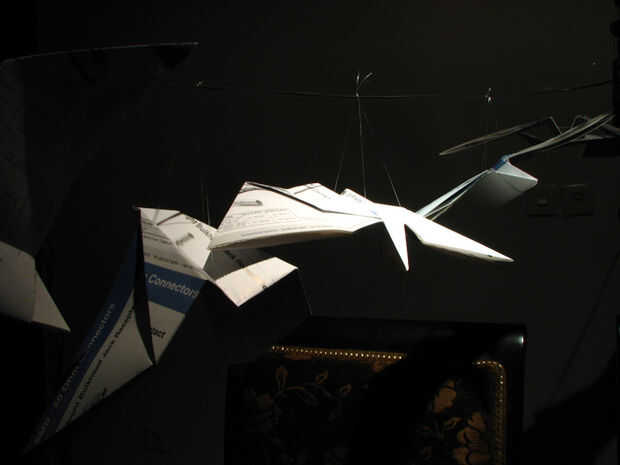 for the birds; puede utilizar este ling para ver cómo hacer este pájaro de origami paso a paso; http://www.Origami-Fun.com/origami-Twirling-Bird.html o puede utilizar mis fotografías. He utilizado papeles de desperdiciadas para hacer pájaros, se pueden utilizar también algunos duro papel negro u otro color como usted desea.
