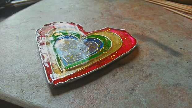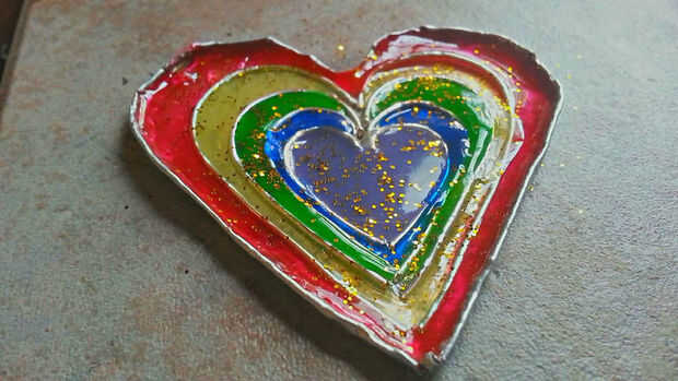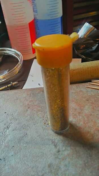 Después de los segmentos de color curaron, opté por añadir un poco de brillo al proyecto para algunos 'chispa' extra - querrá hacer lo mismo, o tal vez agregar algo más, o nada de nada - incumbe a usted! Una vez que se ha asentado en él, organizar en el proyecto. Una vez que estés satisfecho, su tiempo para sellar toda la superficie de la pieza una capa de clara de epoxy.
