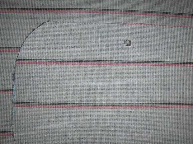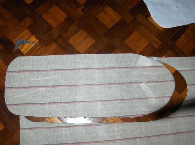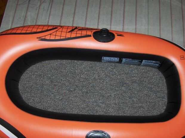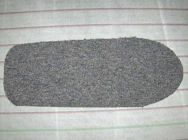 Después de marcar, cortar la pieza, pero considera algunos despacho 1" o 3cm del borde porque tendrás que hacer varios cortes pequeños alrededor de la pieza. Estos cortes se doblará hacia arriba para pegar a la siguiente pieza de la alfombra, que hará la primera pared interna en el barco.