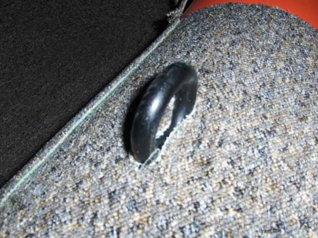 Esto es como la mirada de cubiertas laterales. Para pasar esa pieza negra que contiene la fila, simplemente marcar la alfombra con la tiza y corte con una cuchilla o tijeras.