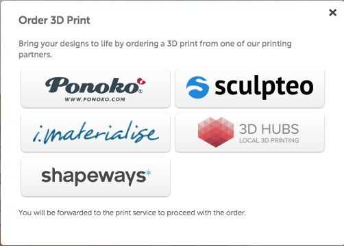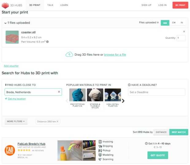 Recoger cubos 3D como el socio de la impresión, después de clic en el botón 'Continuar impresión' se le dirigirá al sitio web 3DHubs. Escoger un centro cercano, orden y espere a su montaña imprimir.