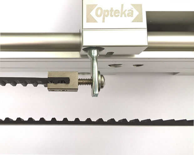 El momento de diseño inspirado con este proyecto es la varilla de empuje / sistema del sujetador, un método simple y eficaz para fijar y tensar la correa de la correa. Determinar la longitud de correa necesaria y corte. Fije el soporte de cinturón XL a los extremos de la cinta utilizando la llave hexagonal de 1/16", coloque la correa en su lugar y tense la correa mediante 2-6/32 tornillos.