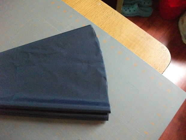 Cortar cada trozo de tela en un cuadrado y luego doblar en cuartos. Mantener el centro de la tela, doblar el extremo puntiagudo en medio dos veces más para que tenga un triángulo largo flaco. El centro de la tela debe estar en el extremo puntiagudo para que cuando corte te una forma de circle(ish).