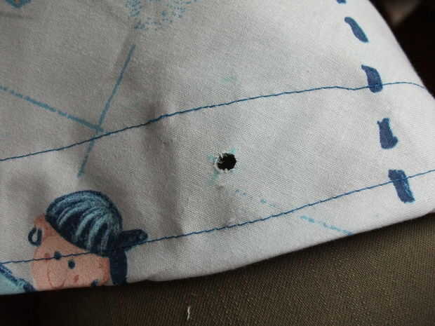 Siga las instrucciones para su herramienta de ojete para hacer los agujeros a través de todas las capas en cada punto marcado. Mi sistema tenía un sacador de agujero para esto, para ser utilizado con un martillo.