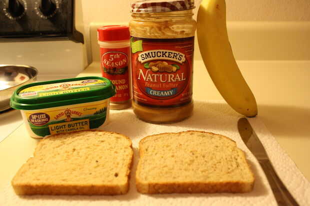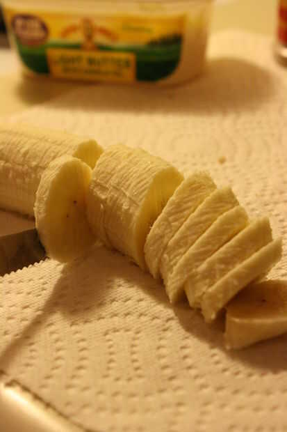 - ¿Dónde está la jalea? ¿Por qué comer conservantes azucarados, falsos cuando se pueden añadir frutas reales a su emparedado? Sólo diciendo '. Rodajas de banana son una selección mucho más nutritiva. Además, bananas son altas en fibra, potasio, hierro y en realidad contienen un aminoácido conocido como triptófano que el cuerpo convierte en serotonina. En otras palabras, consumir plátanos puede hacerte una persona más feliz.