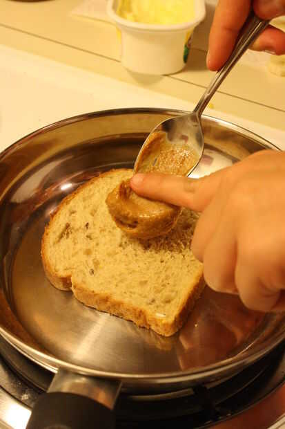 Sugerencia: es más fácil difundir PB con una cucharadita, una vez que el segmento está en la sartén.